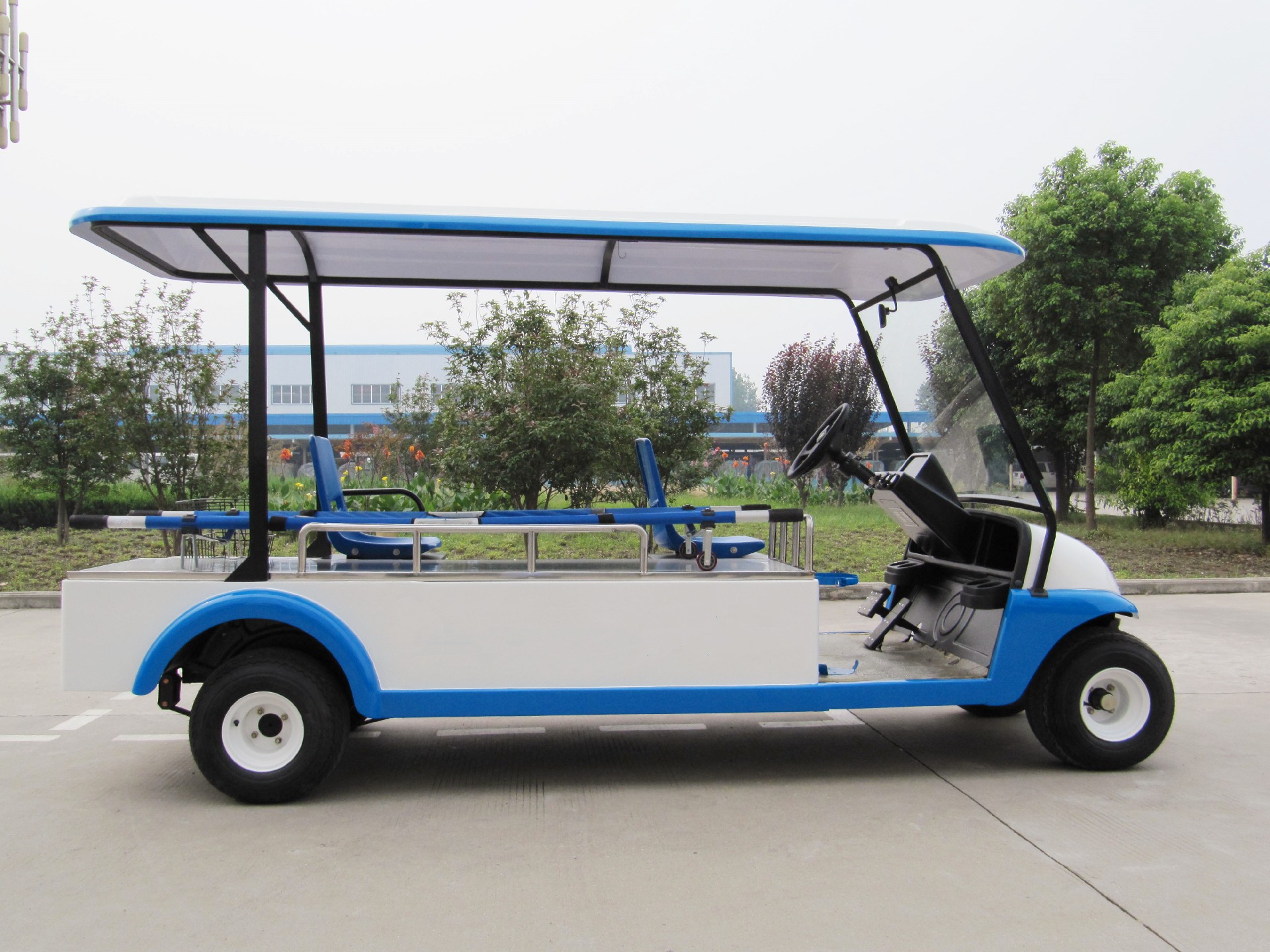 电动救护车是按电动车的各项技术指标进行设计,具有电刹及自动反复充电功能